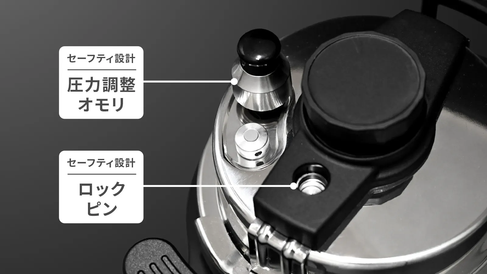 ロックピン:加圧後ピンが上がり蓋をもう一段階ロック。