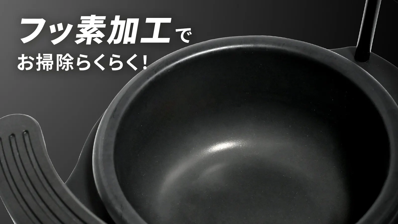 焦げつきにくく洗いやすいフッ素加工済。洗いやすいので「焦げつかないか心配」と感じていた方にもおすすめです。