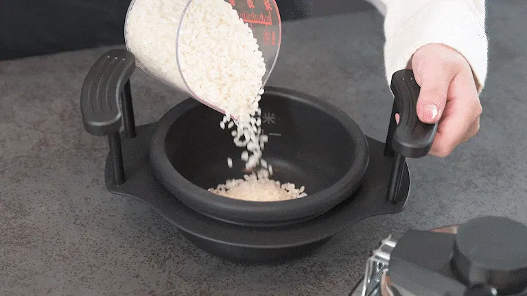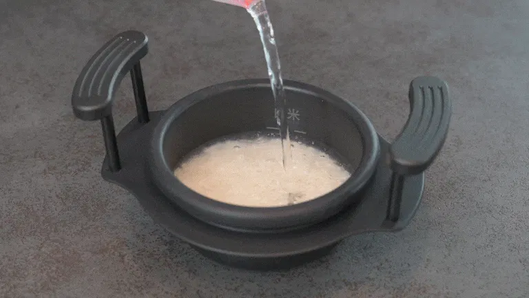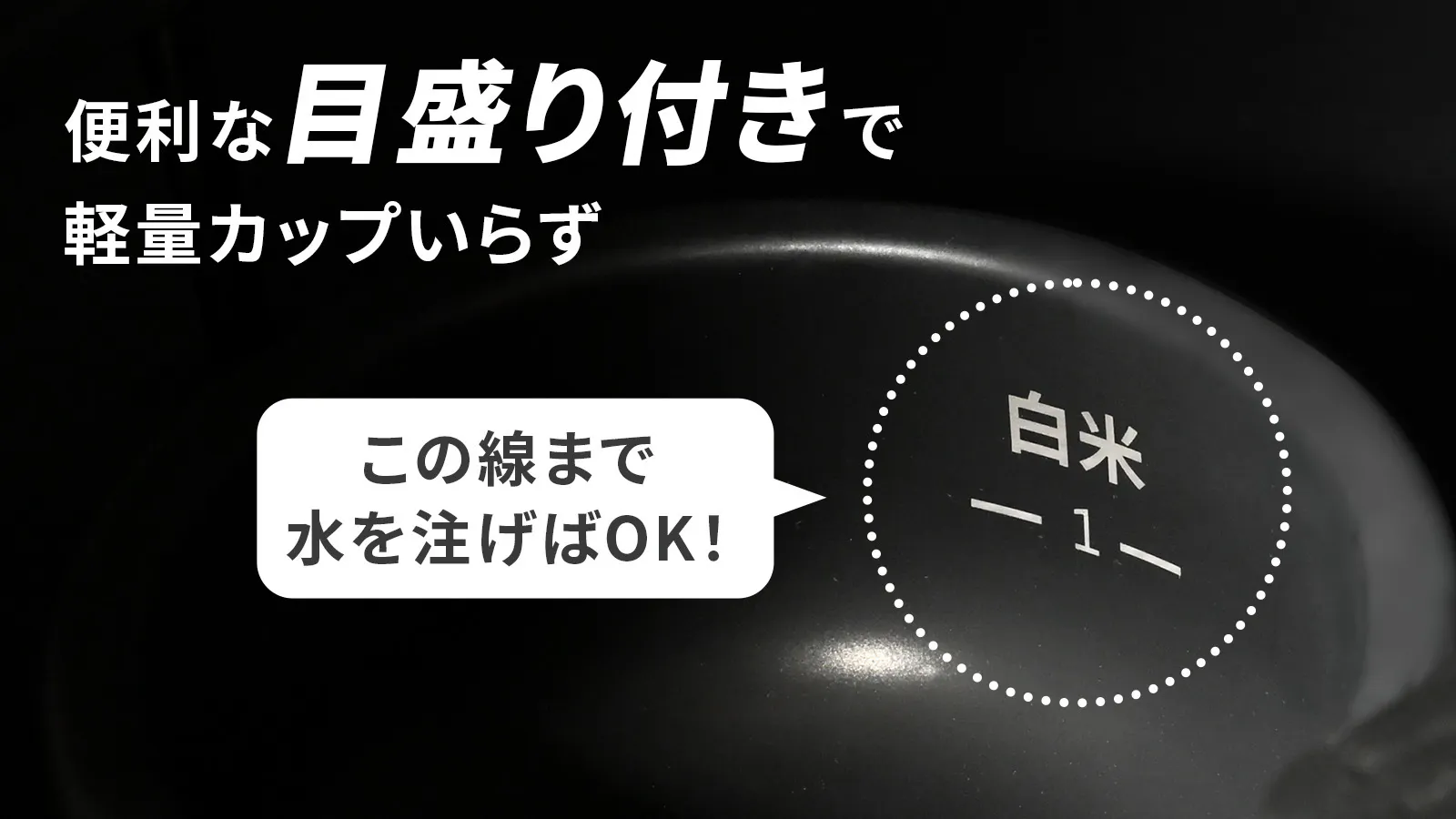 白米なら計量カップがなくてもかんたんに水加減できる目盛りつき