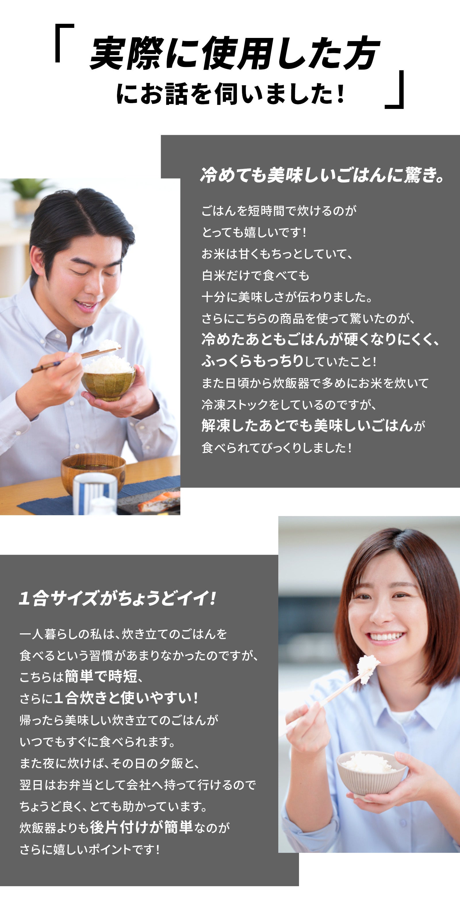 美味しいごはんを、おひとりさまやご夫婦お二人が1食もしくは1日で食べるのにちょうどいい量で炊きあげます!