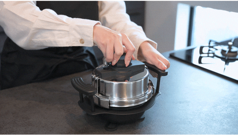 蓋のロックと解除はダイヤルを回すだけ。片手でかんたんに操作できます。