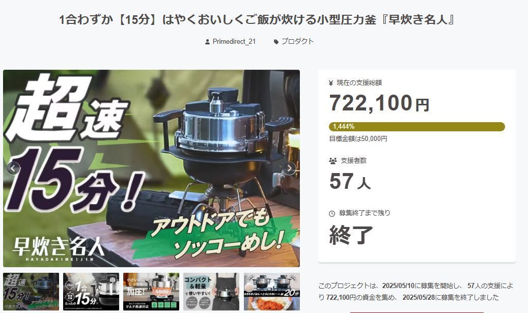 2025/05/29 12:12皆様早炊き名人プロジェクトご支援ありがとうございました。リターンは明日出荷予定です。今しばらくお待ちください。よろしくお願いします★ もっと見る