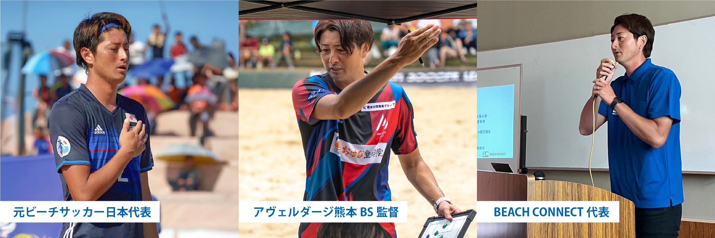 2015年にビーチサッカーに転向し、2017年にはビーチサッカー日本代表選手として国際大会に出場。現在はビーチサッカークラブ「アヴェルダージ熊本BS」の代表も務めています。
