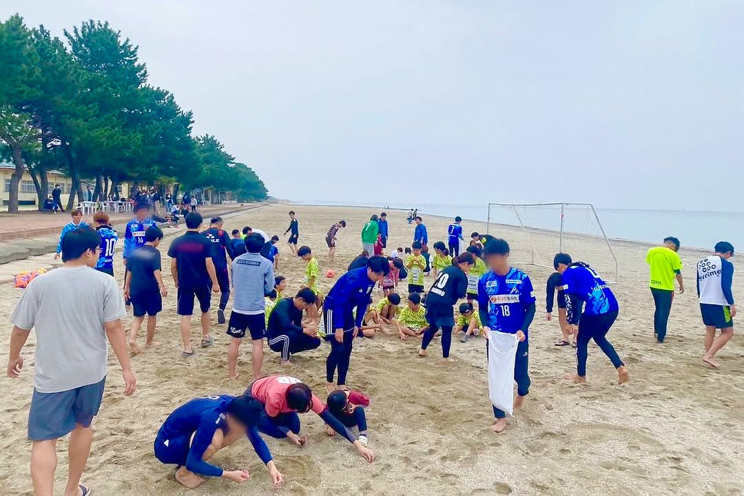 海外では幼い子どもたちが日常的に砂浜で遊び、様々なスポーツを楽しむ姿がありました。「もっと幼い頃からビーチスポーツと出会っていたら」—そんな思いを抱くようになり、2017年、地元熊本にビーチサッカークラブ「アヴェルダージ熊本BS」を立ち上げました。