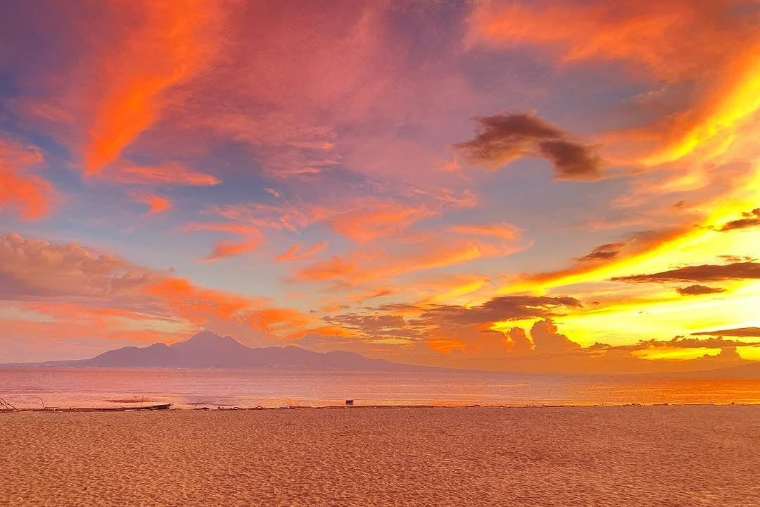 有明海に沈む真っ赤な夕日。対岸に見える雲仙普賢岳の雄大な姿。どこまでも続く砂浜。