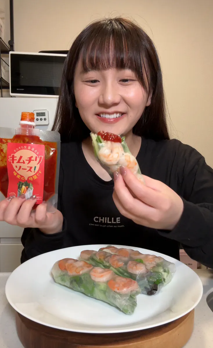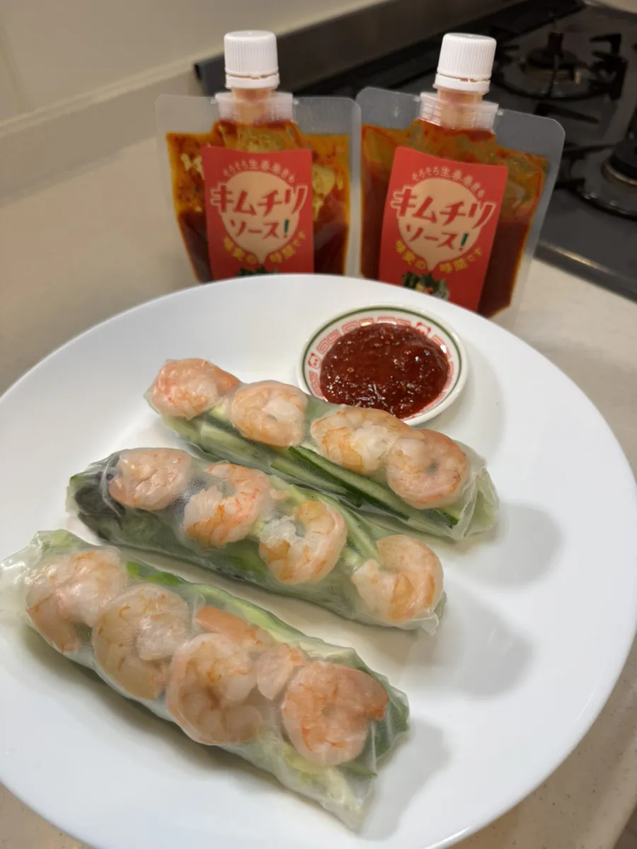 私が自信をもって発売する「キムチリソース」は生春巻きはもちろん、 色々な料理にめっちゃ合います!