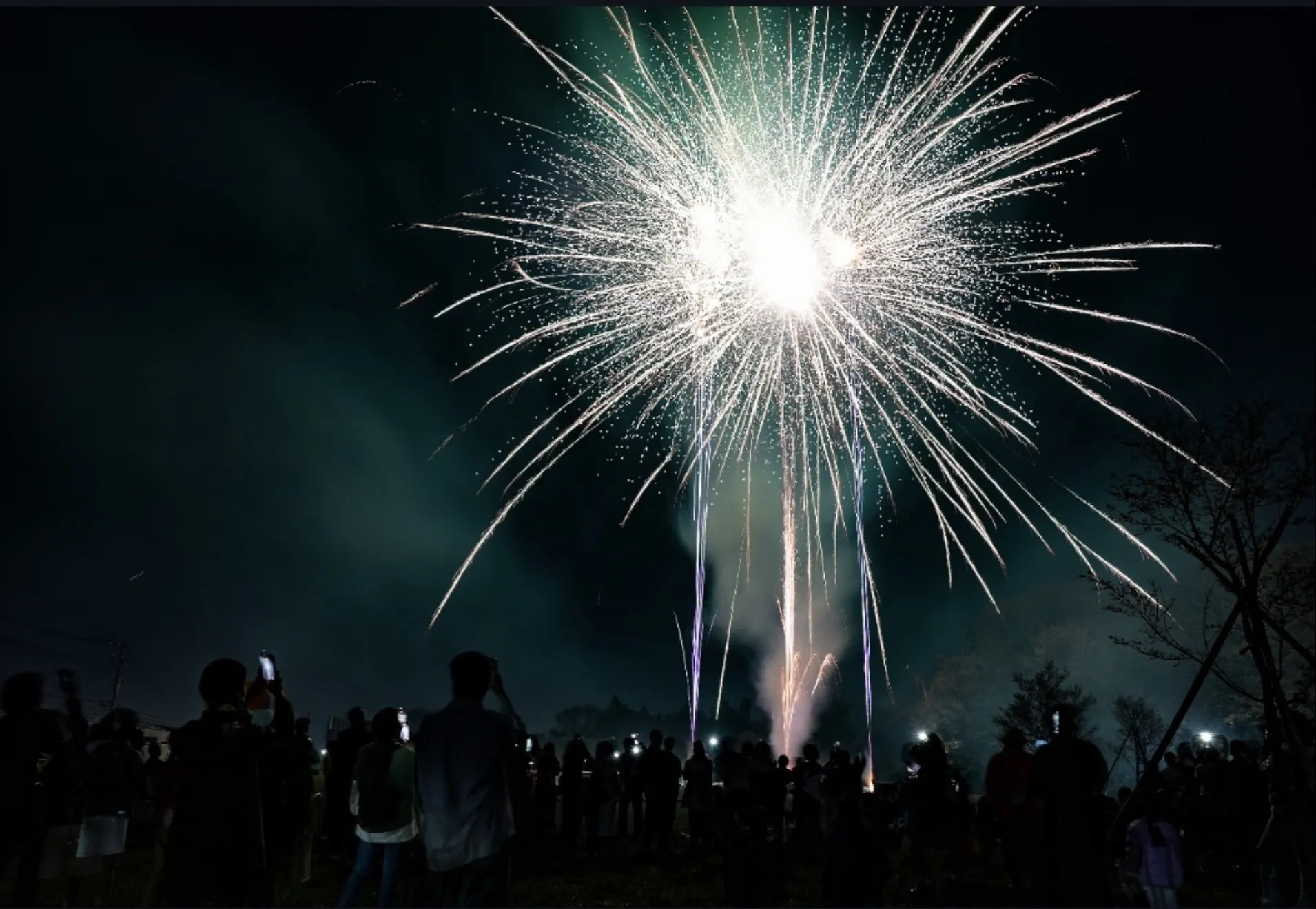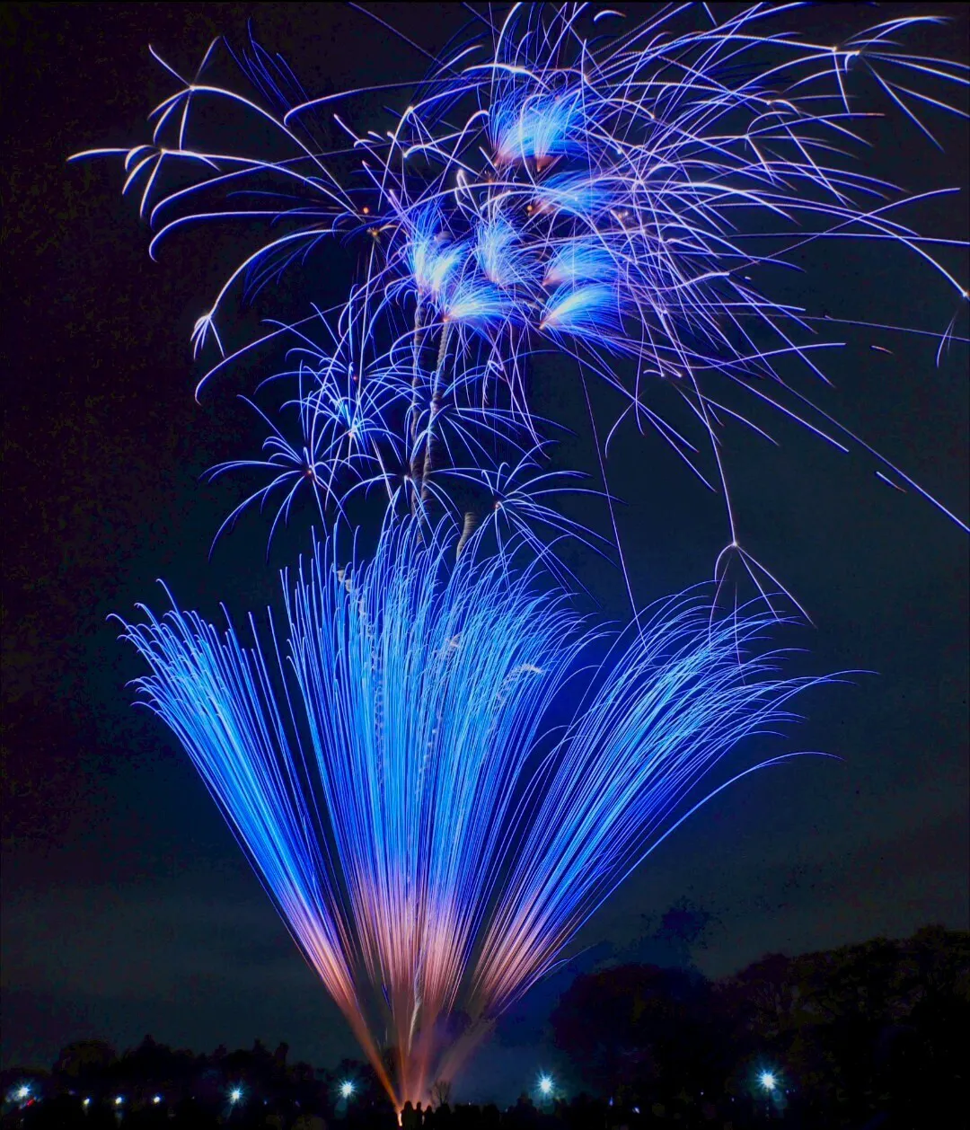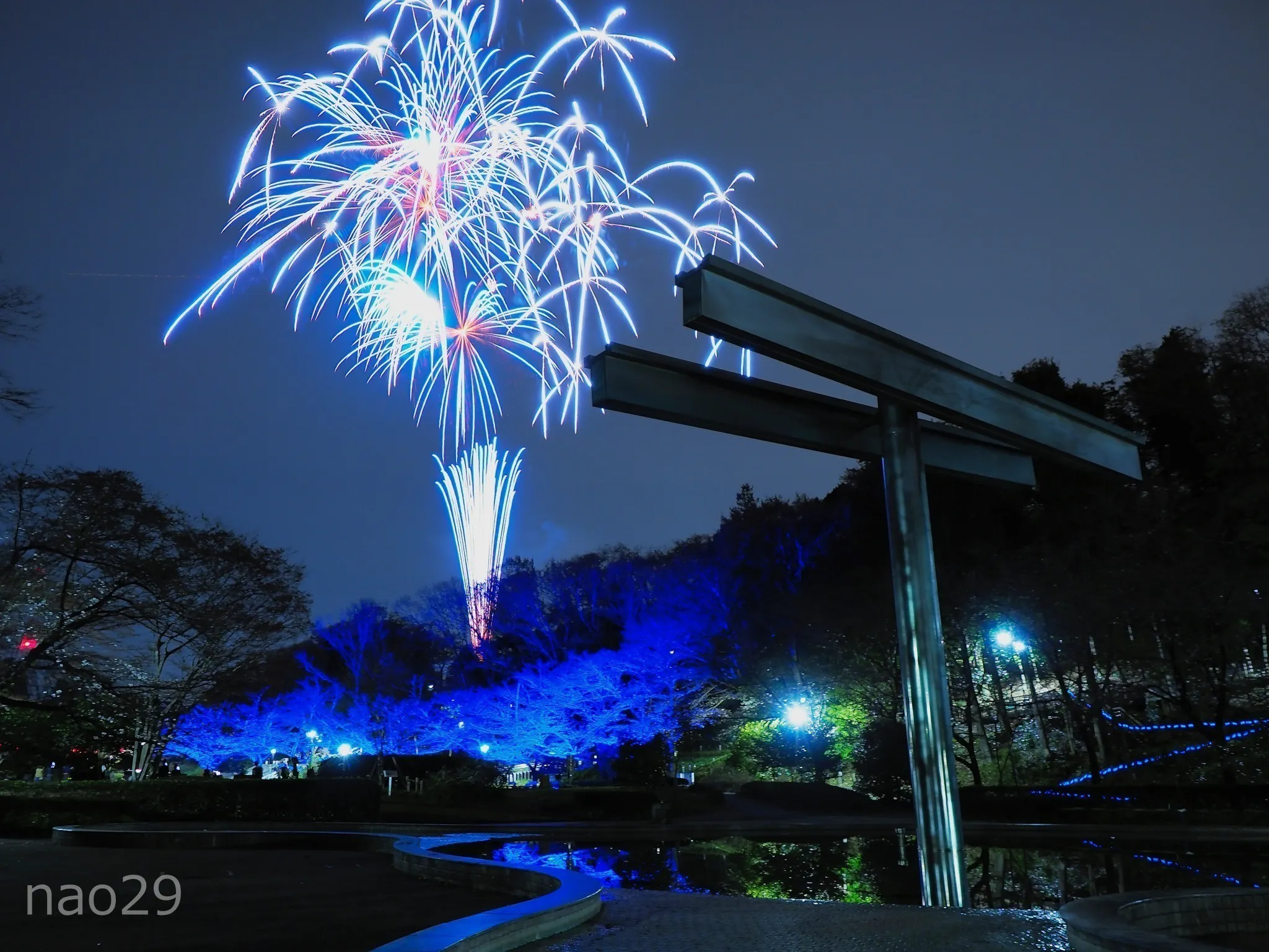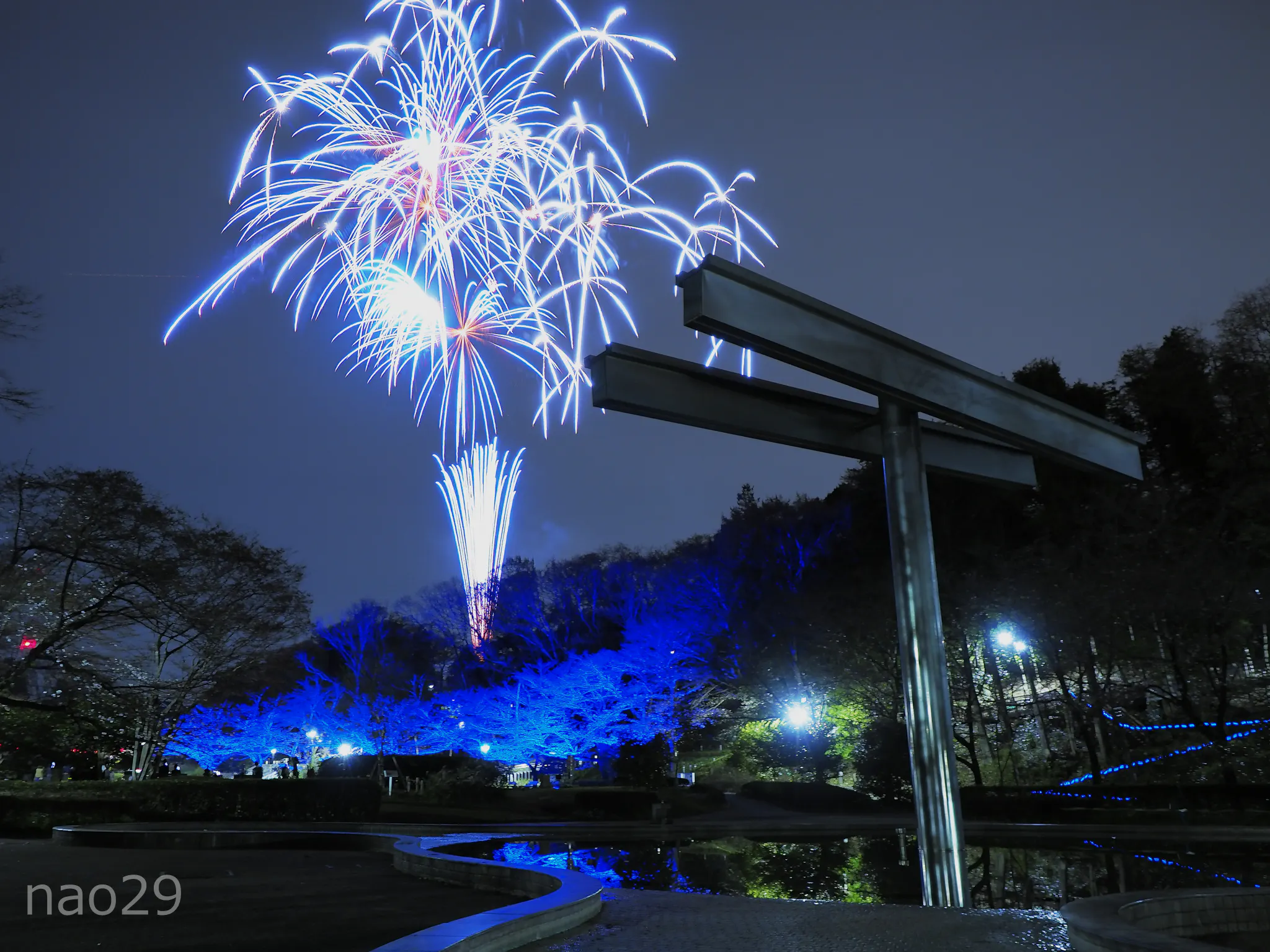 ・芹ケ谷公園にて青い花火打ち上げ(19:00~約6分)