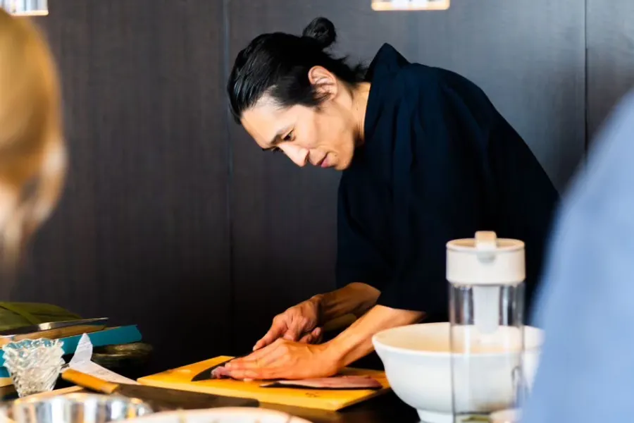 義田鮨では、日本に数人しかいない津本式三つ星公認・佐久間亮介氏(津本式公認)から