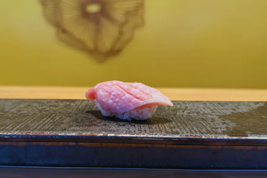赤身と脂のバランスが織りなす、至福の瞬間。口に入れた瞬間に広がるとろける脂と、まぐろ本来の旨みの余韻が心地よく残ります。温度と熟成を見極め、今この瞬間が一番おいしいと感じられるよう仕立てています。