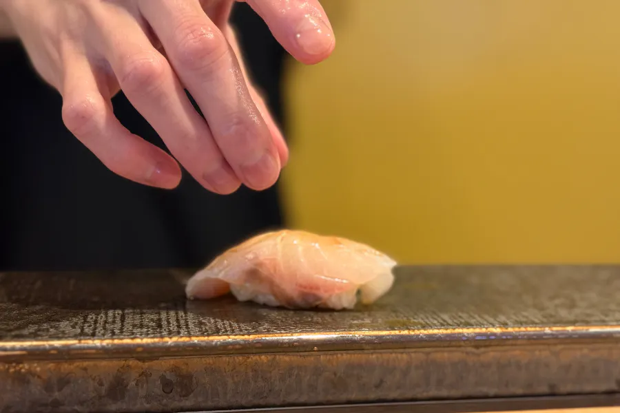 しっかりと厚みがありながらも、包丁で隠し包丁を丁寧に入れることで、驚くほどなめらかな口当たりに。シャリとの一体感が際立つ、静かな主役です。