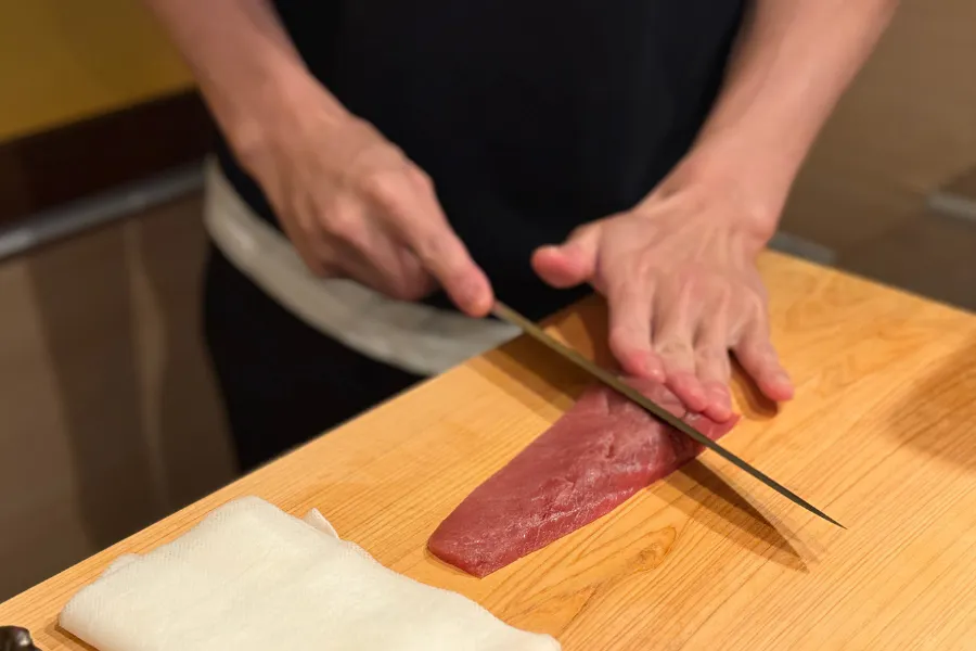 従来の血抜きよりも鮮度保持力が高く、義田鮨ではこの技術を熟知した仲卸からの仕入れを通じて、“旨みのピーク”を見極めた状態でネタとしてご提供しています。