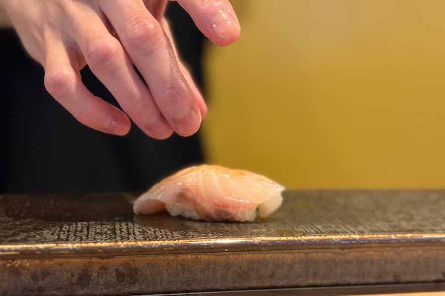従来の血抜きよりも鮮度保持力が高く、義田鮨ではこの技術を熟知した仲卸からの仕入れを通じて、“旨みのピーク”を見極めた状態でネタとしてご提供しています。