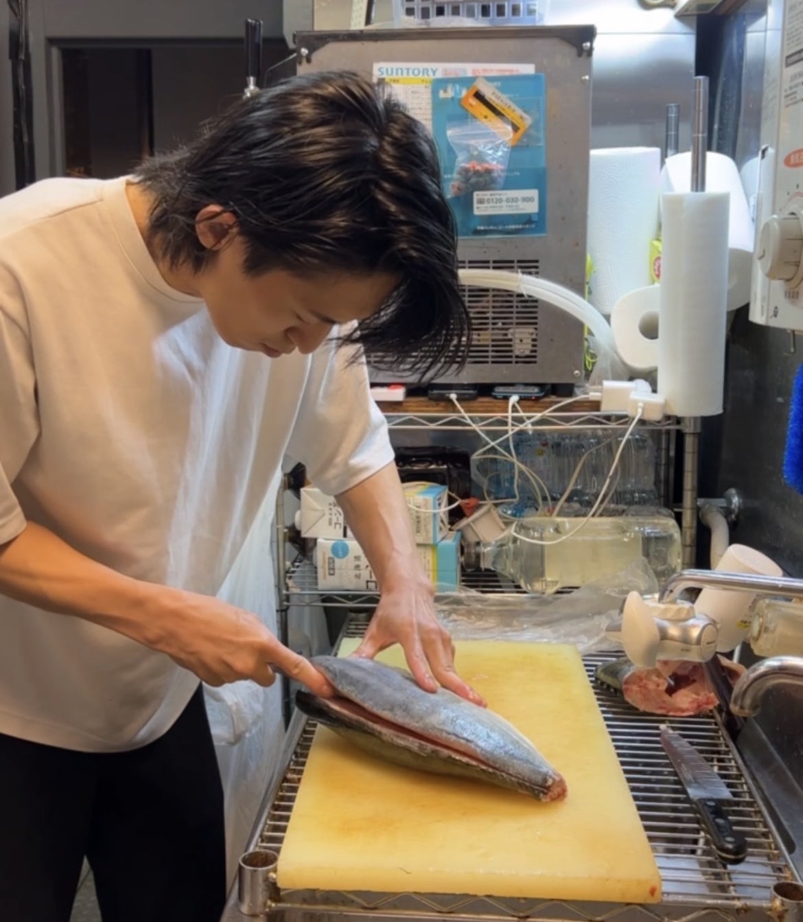 市場で1時間〜1時間半かけて新鮮な魚を選び、店へ戻る。そこから魚を捌き、仕込み、そして夜の営業。営業が終われば、片付けをして帰宅。