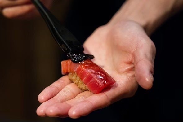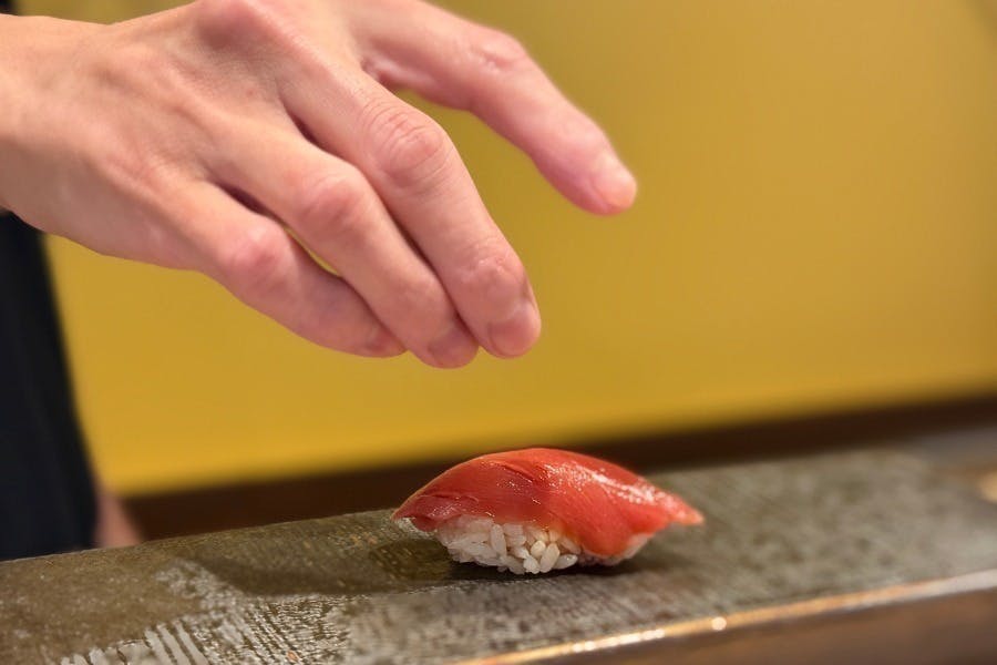 義田鮨では、日本に数人しかいない津本式三つ星公認・佐久間亮介氏(津本式公認)から