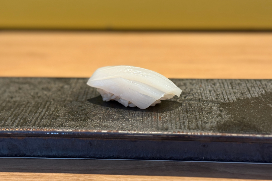 しっかりと厚みがありながらも、包丁で隠し包丁を丁寧に入れることで、驚くほどなめらかな口当たりに。シャリとの一体感が際立つ、静かな主役です。