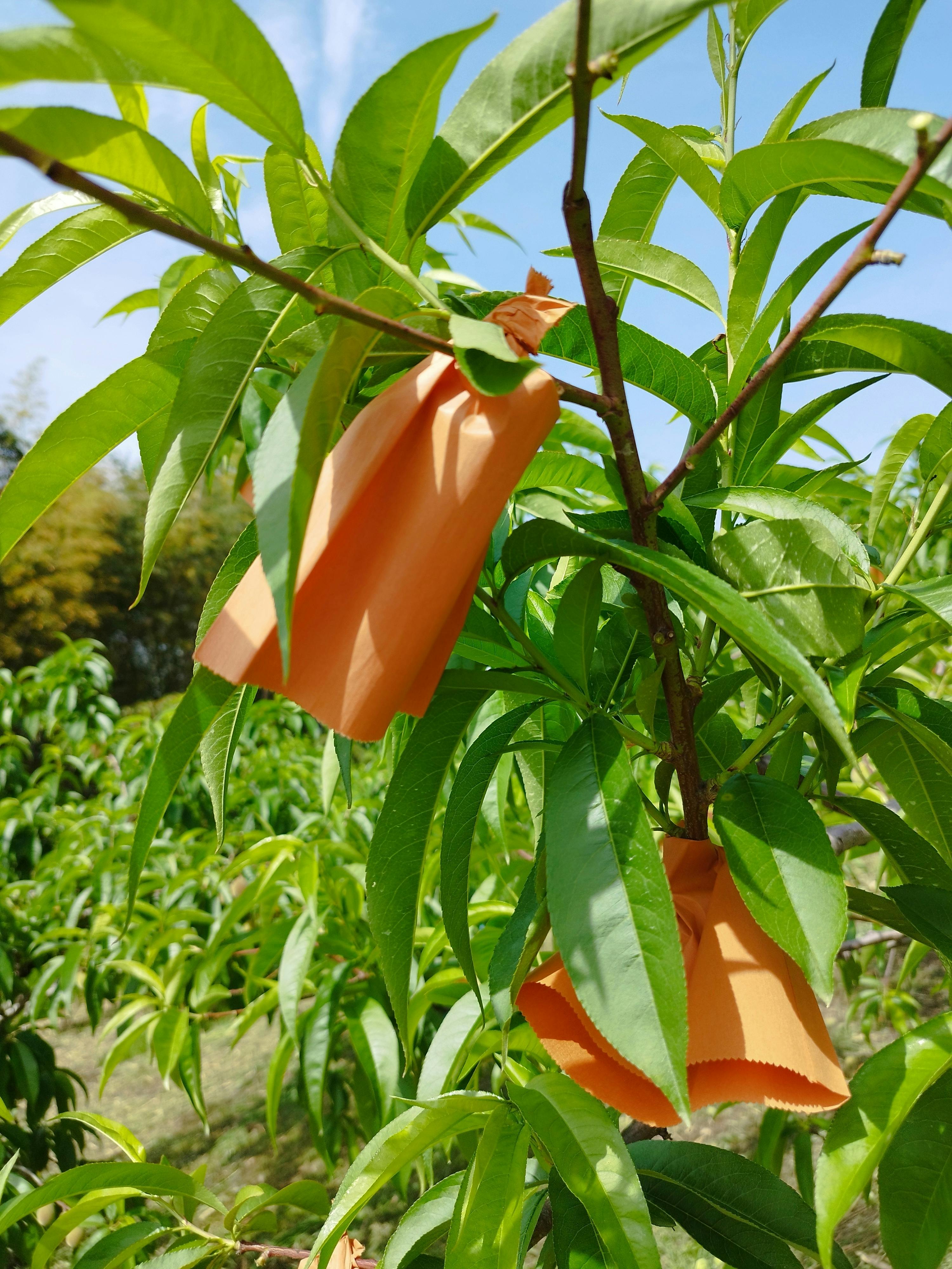 なんば農園では、本日より桃の袋掛けがスタートしています。