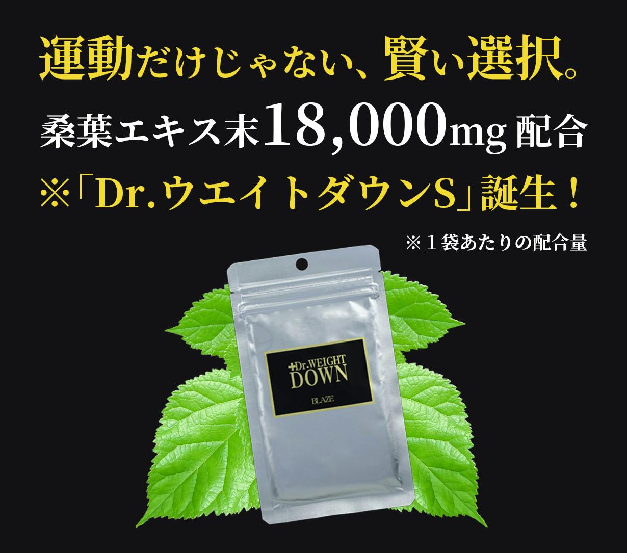 「Dr.ウエイトダウンS」には、糖の吸収を緩やかにする成分”桑葉エキス末”が18,000mg含まれています。
