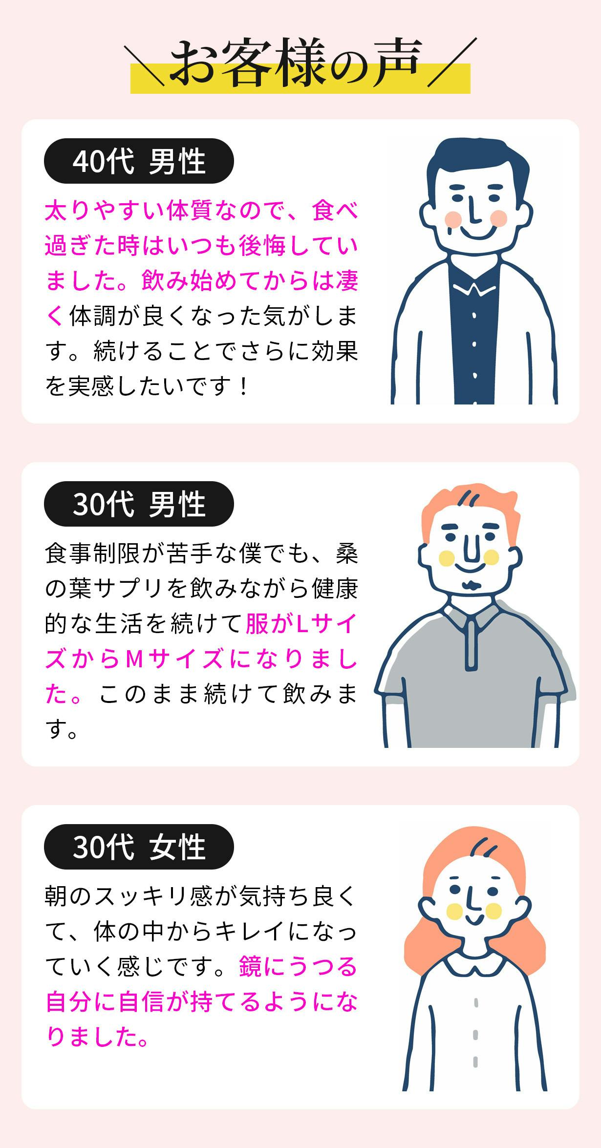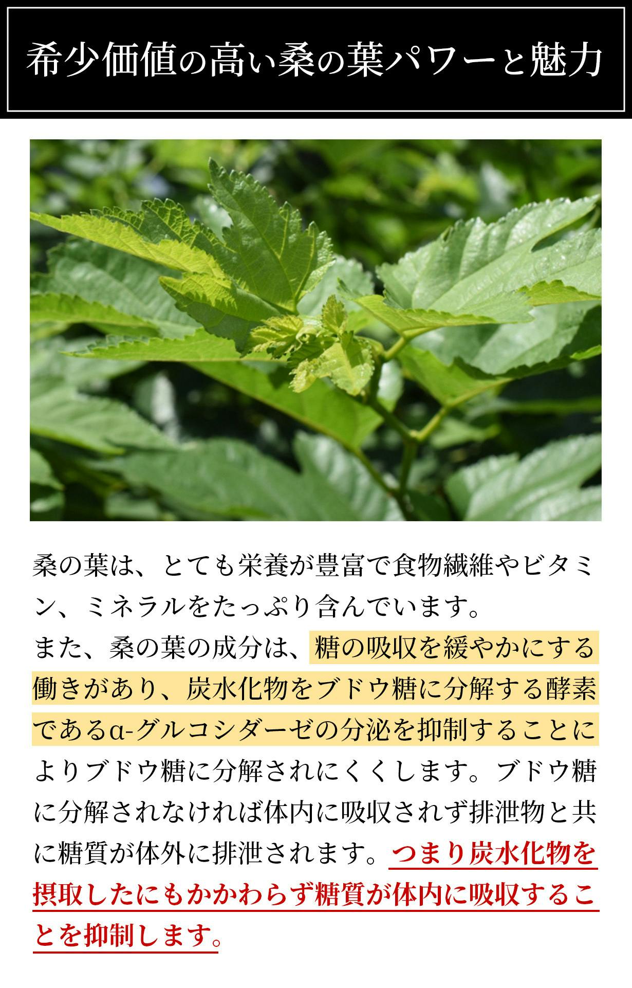 桑の葉成分を、食べる前や食事中に摂ることでダイエットをサポートします。
