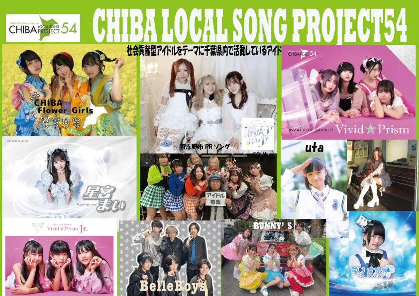 千葉県を音楽で元気にしよう、社会貢献型アイドルプロジェクト「CHIBA LOCAL SONG PROJECT54」は任意団体としてスタートしました。活動費用はクラウドファングで皆様のご支援ご協力から運営しています。しかしながら予想より必要な経費が発生し更なるご支援が必要となっています。このプロジェクトへのご支援ご協力、これからもよろしくお願いします。又、協賛、スポンサーも募集しています。