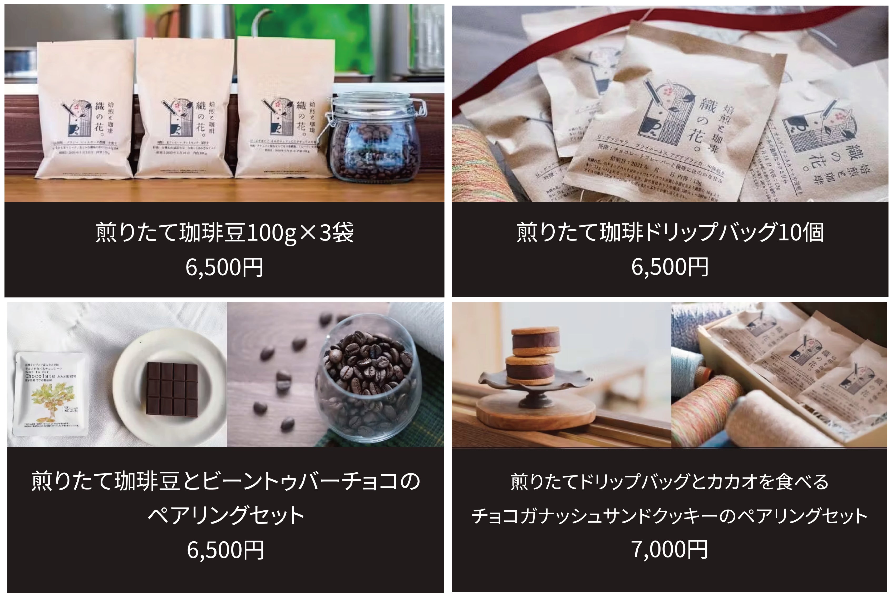 織の花。がこだわる煎りたて新鮮な珈琲とカカオからつくるビーントゥバーチョコをご自宅でも。