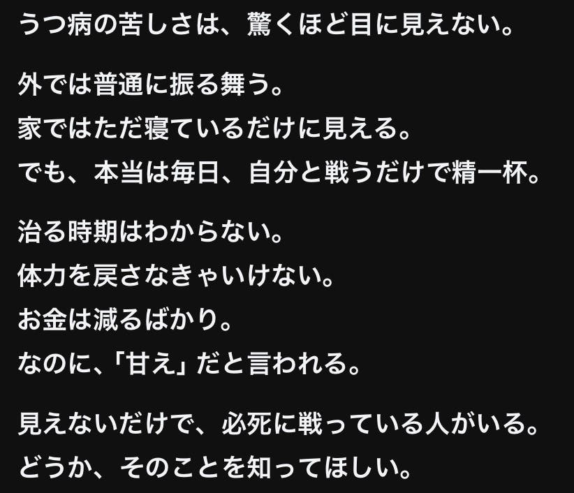 そして、病状が良くなった時は、何かの形で表現者としてまた歩んでいきたいと思います。