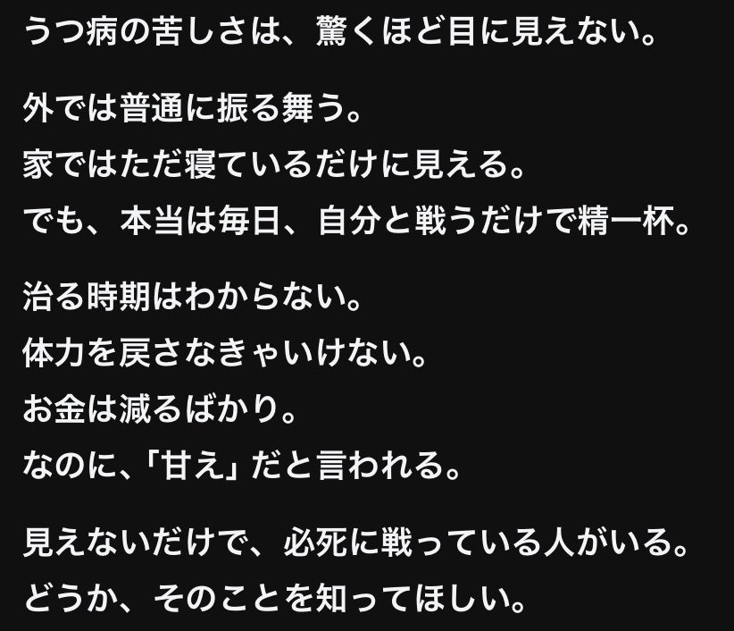 「働けない⇒生活できない⇒無理して働く⇒体調不良になる」そして、また働けなくなるの永遠ループなんです。