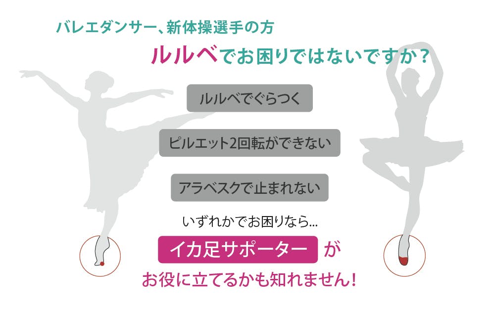 そこで、履くだけで踊りやすくなる「イカ足サポーター」が日本のバレエ界に普及したら、ピルエット2回転だけでなく、他のテクニックも習得しやすくなります。そんなバレエ界になったらいいなとは思うのですが、「イカ足サポーター」の普及はまだ緒についたところです。当方としては、「もっと早く普及させねば」と日々歯がゆい思いをしているのが実情です。