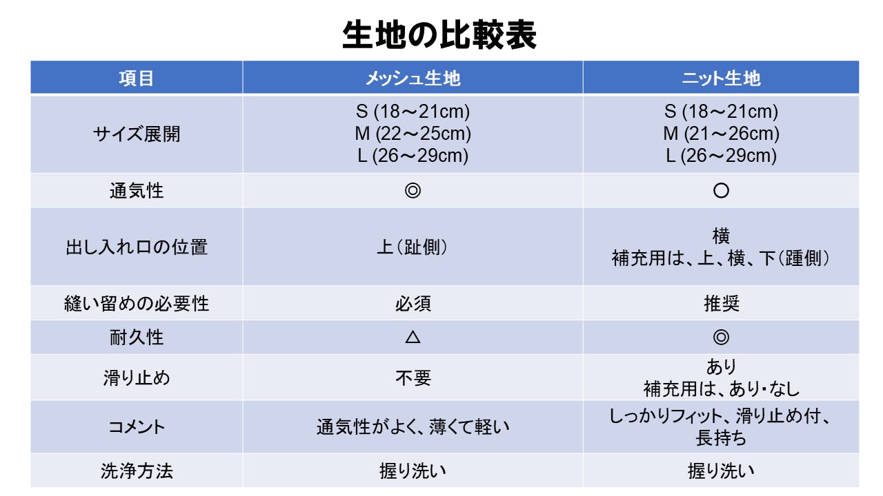 すでに商品を購入済みの方のための、補充用ソックスもございます。サポーターが履けなくなったときに備えて、お手元に置いておいていただければと存じます。シリコン・パッドは引き続き同じものをお使いいただけます。