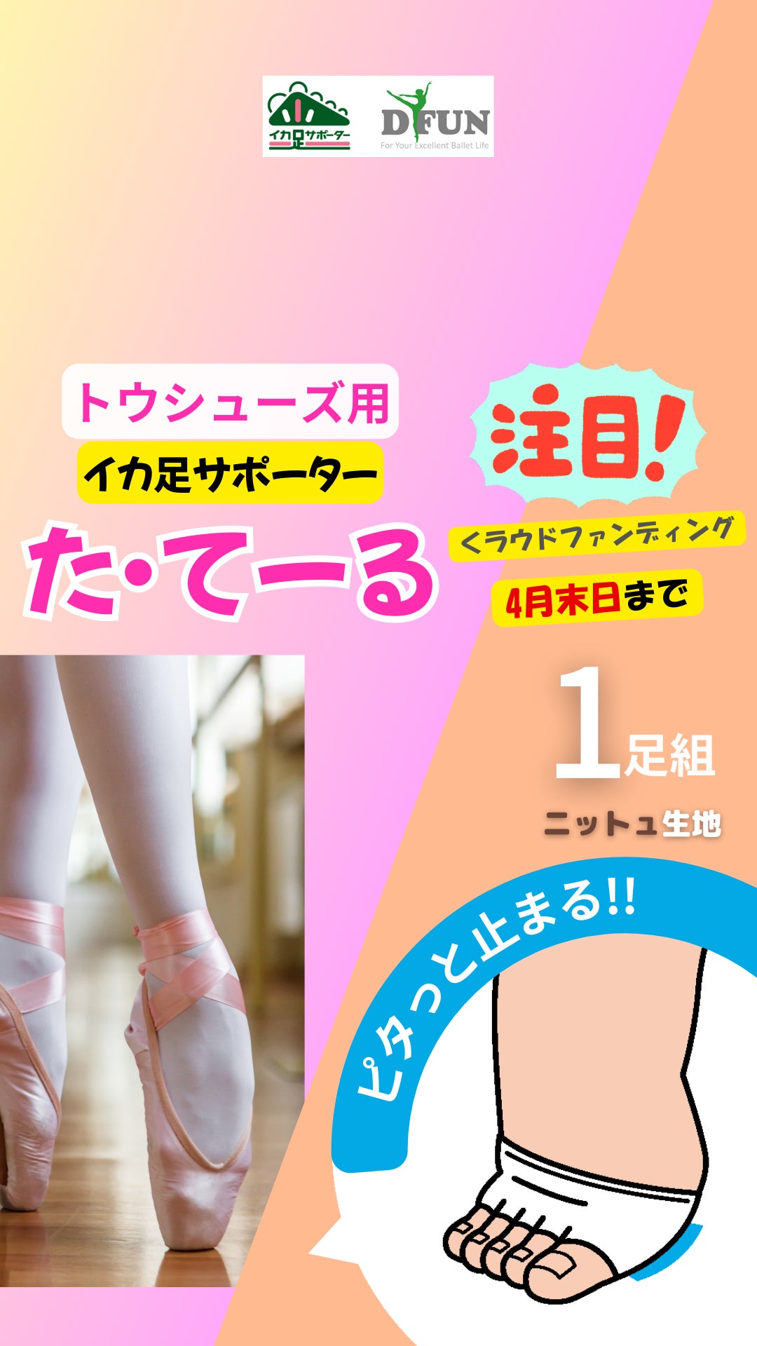 トウシューズ専用イカ足サポーター『た・てーる』です!