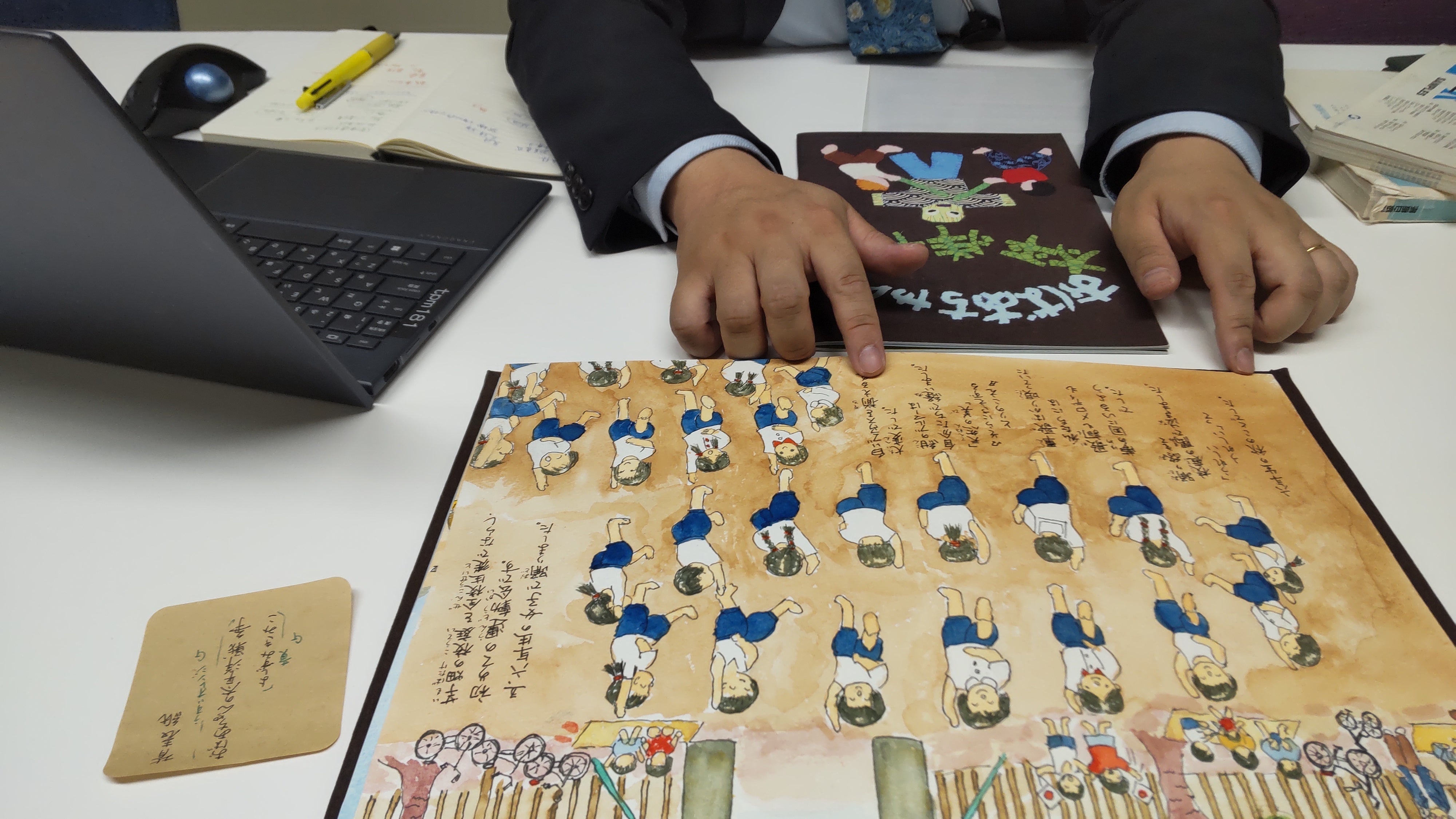 製本した場合、見開き絵の中心ののどの部分が見えにくくなるので、人の顔や文字がそこへきているぺージは間に余白を入れよう…などと、より良い絵本が出来上がるよう考えてくださいました。