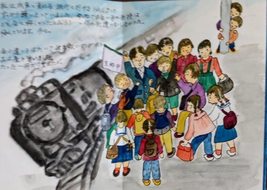 写真は義積喜美子作「はじめての修学旅行」。