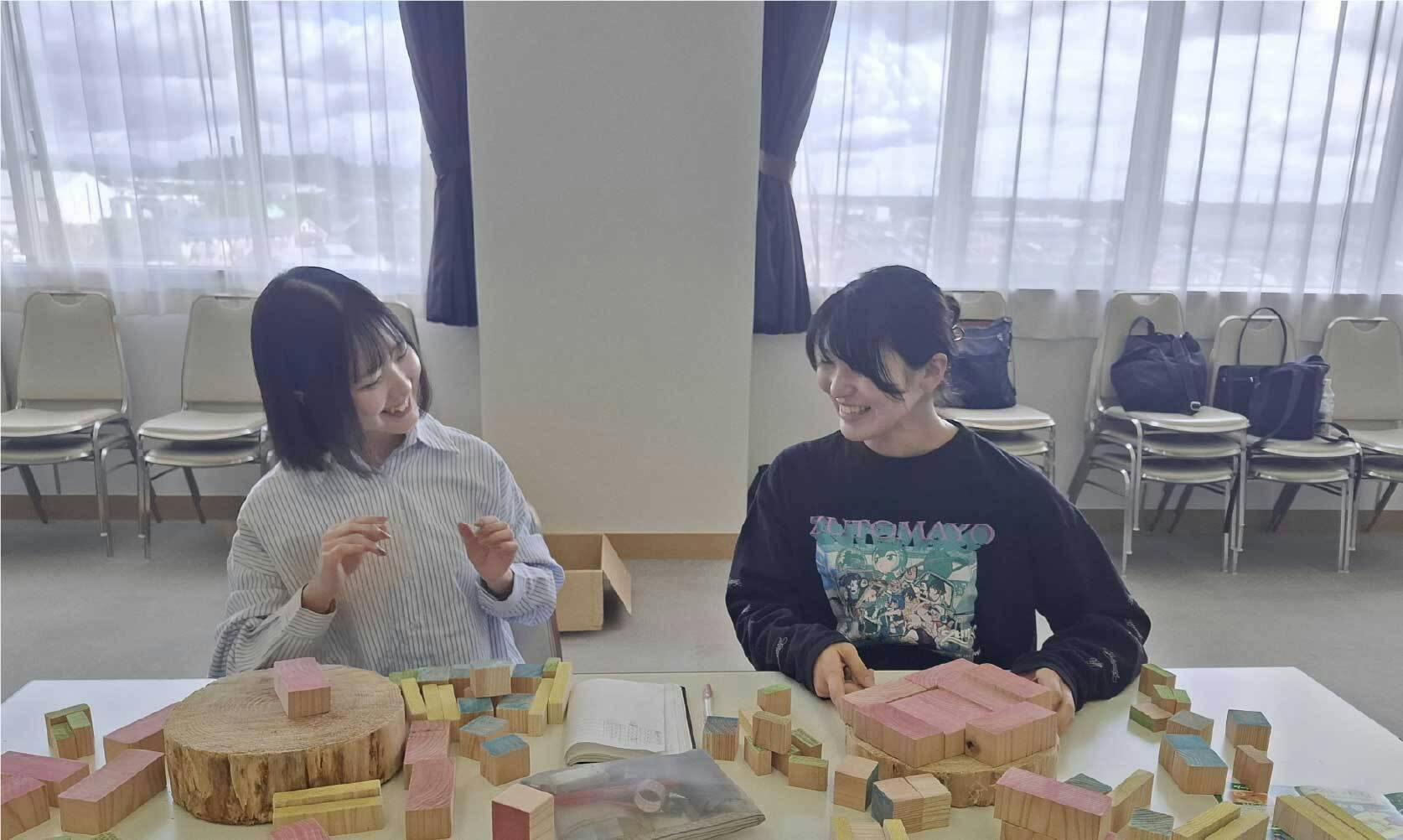 秋田杉をはじめ、地域ならではの樹種に触れながら、高いタワーを作り上げよう!