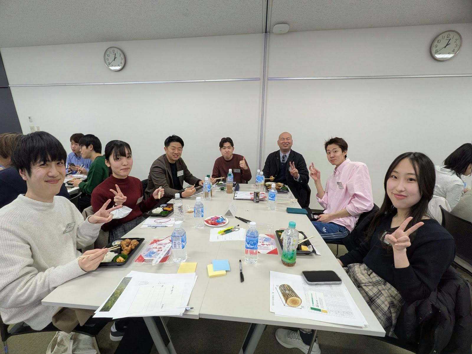 その後、皆で昼食を共にする時間が設けられ学生と社会人がチームごとに交流しました。