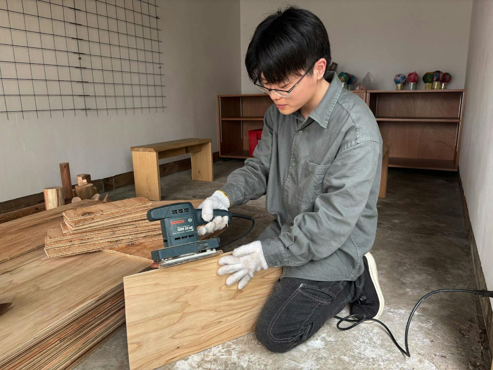 これは、板にヤスリをかけている写真です!