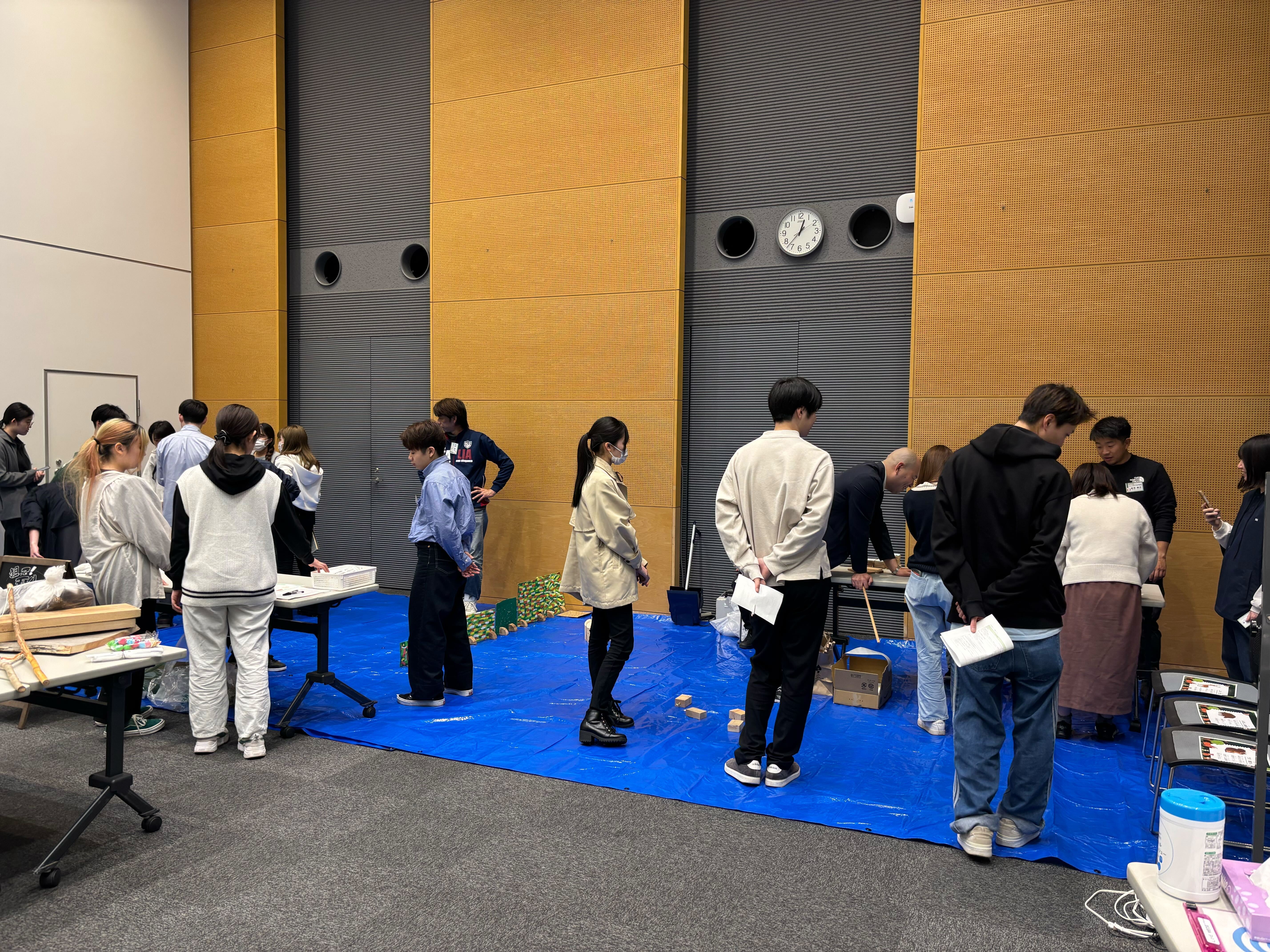 2025/05/29 20:50【活動報告10】共創プログラムDay2を開催しました!こんにちは、木遊祭実行委員会です!残りのクラウドファンディングの日数は4日ですね!時間が経つのは早いもので、いよいよ準備も本格化しています!これまでに14名の方から温かいご支援と応援の声をいただいております。本当にありがとうございます!そんな中、4月26日(金)に「共創プログラム Day2」を無事に開催しました!【参加人数&現場の様子】 当日は、 学生:31名 社会人:11名 合計42名以上が集まり、会場は終始、熱気と笑顔に包まれた一日となりました!【アイスブレイク】はじめに、参加者同士の距離を縮めるためのアイスブレイクタイムを実施!今回は以下の2つのゲームで盛り上がりました・共通点探しゲーム チームごとに「出身地」「好きな食べ物」「最近見た映画」など、意外な共通点を発見して盛り上がりました!・絵しりとりお題を絵だけでつなげていくチーム戦のしりとり!優勝は、「もりさいくべ」チーム!テンポの良い連携で見事勝利!2回目ということもあり、チーム間の連帯感がぐっと深まった時間になりました!【各チーム中間発表+フィードバック】 メインプログラムでは、各チームがこれまでの企画内容を中間発表! 林業や木育の視点を取り入れながら、子どもたちや来場者が楽しめる体験をそれぞれ真剣に考え抜いた企画ばかりでした。各チーム個性が現れたユニークな発表ばかりで、お互いに刺激を与え合いました。社会人の皆さんからは、 「これは現実的に実現できそう!この会社なら協力できるかも」「ここをもう少し掘り下げたら、もっと面白くなる!」 など、具体的かつ前向きなフィードバックをたくさんいただき、各チームにとっても大きな刺激となったようです!【各チームでスケジュール調整】発表とフィードバックを受けて、チームごとに今後の制作スケジュールを再確認。 限られた時間の中で、どう進めていくかを一つひとつ明確にしながら、企画のブラッシュアップに取り組んでいました。参加者からは 「やることがクリアになってきた!」という声も多く、木遊祭本番に向けて、いよいよ動き出した実感が高まってきました。★クラウドファンディングやSNSでの応援が、学生たちにとって大きな励みになっています。 今後とも、木遊祭への温かいご支援をどうぞよろしくお願いいたします! もっと見る