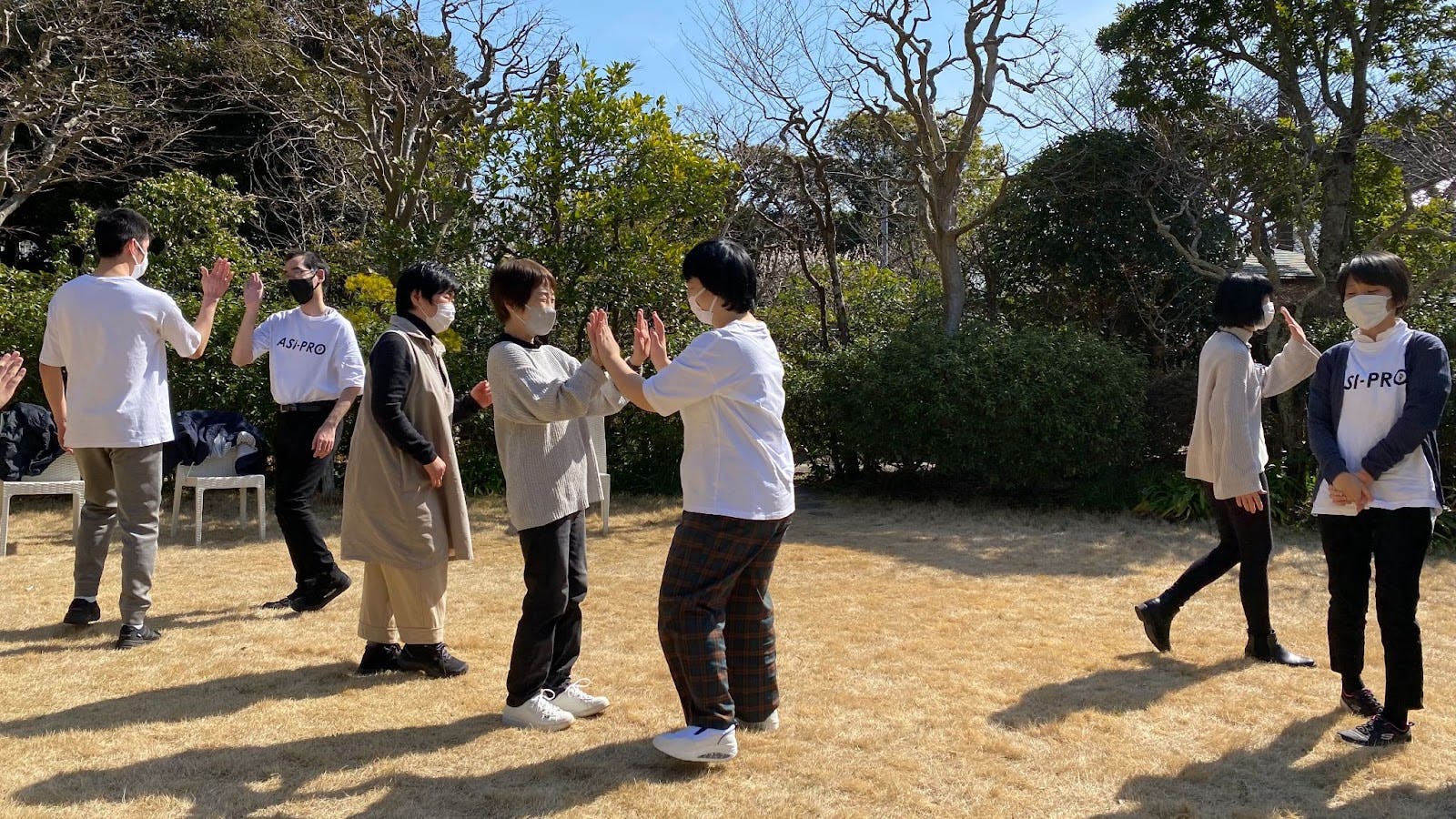 コミュニケーションゲームは、演劇や社員研修のアイスブレイクとしても使われるものです。「まず目を合わせて同意を得て」、ウインクやハイタッチをしていくワークを通して、他者と関わる感覚やお互いへの思いやりが生まれていきます。