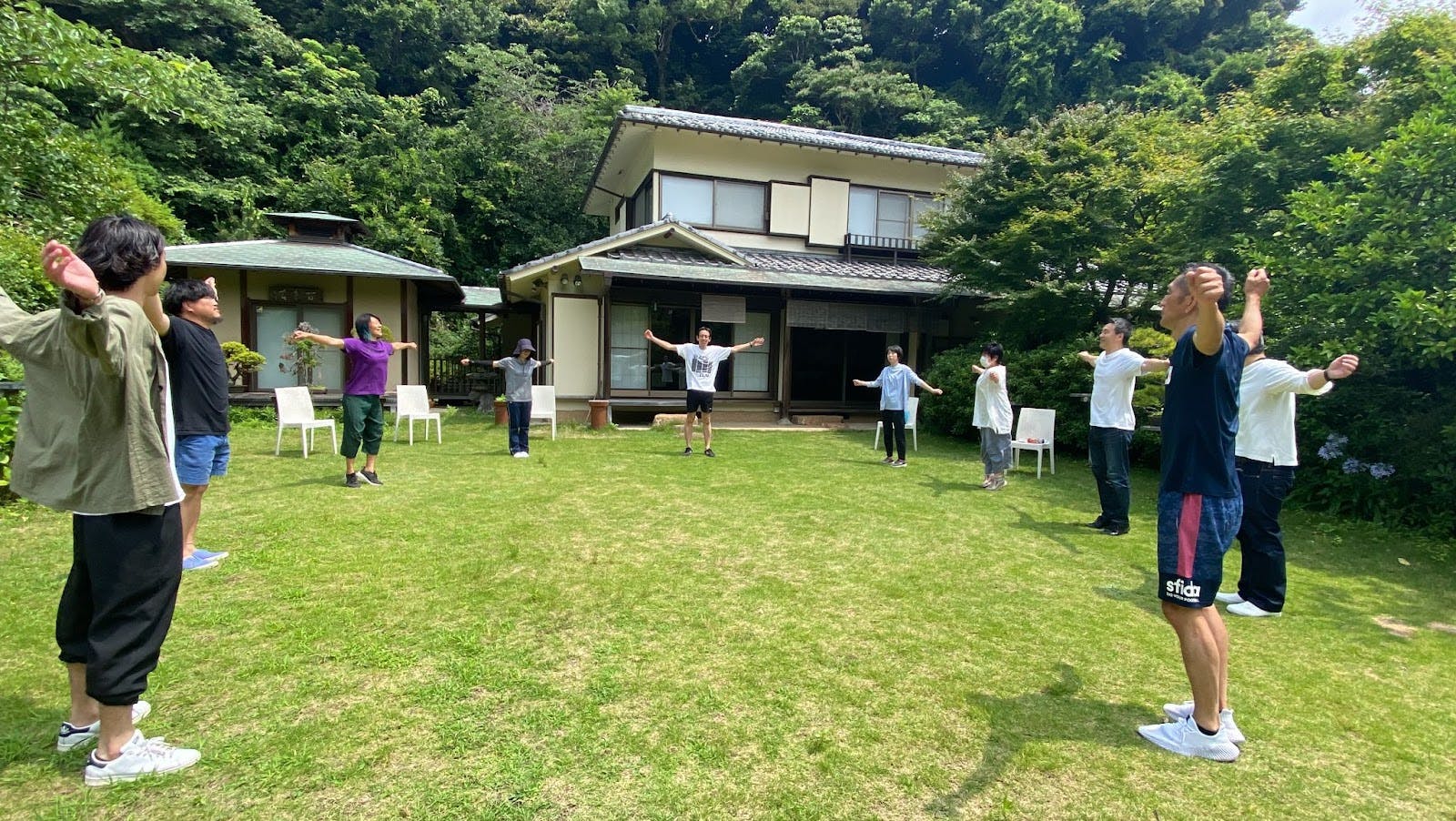 提案された枠の中で、自分の想像力を使う力を育むワークです。以前は「王様として」など提案していましたが、最近では「動物の何か」「植物の何か」と枠を提案し、内容は各自でイメージして歩きます。