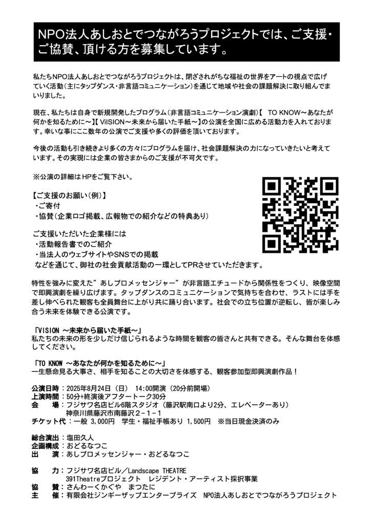 NPO法人あしおとでつながろうプロジェクト第7回公演のお知らせです!