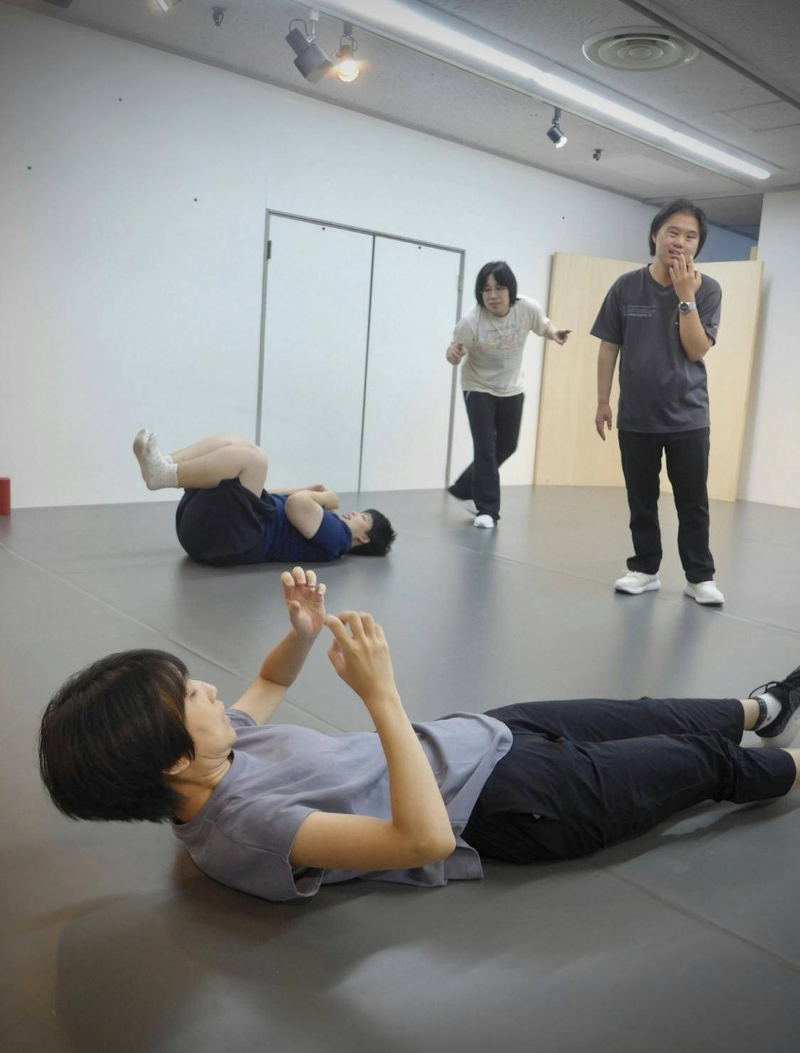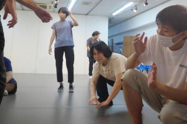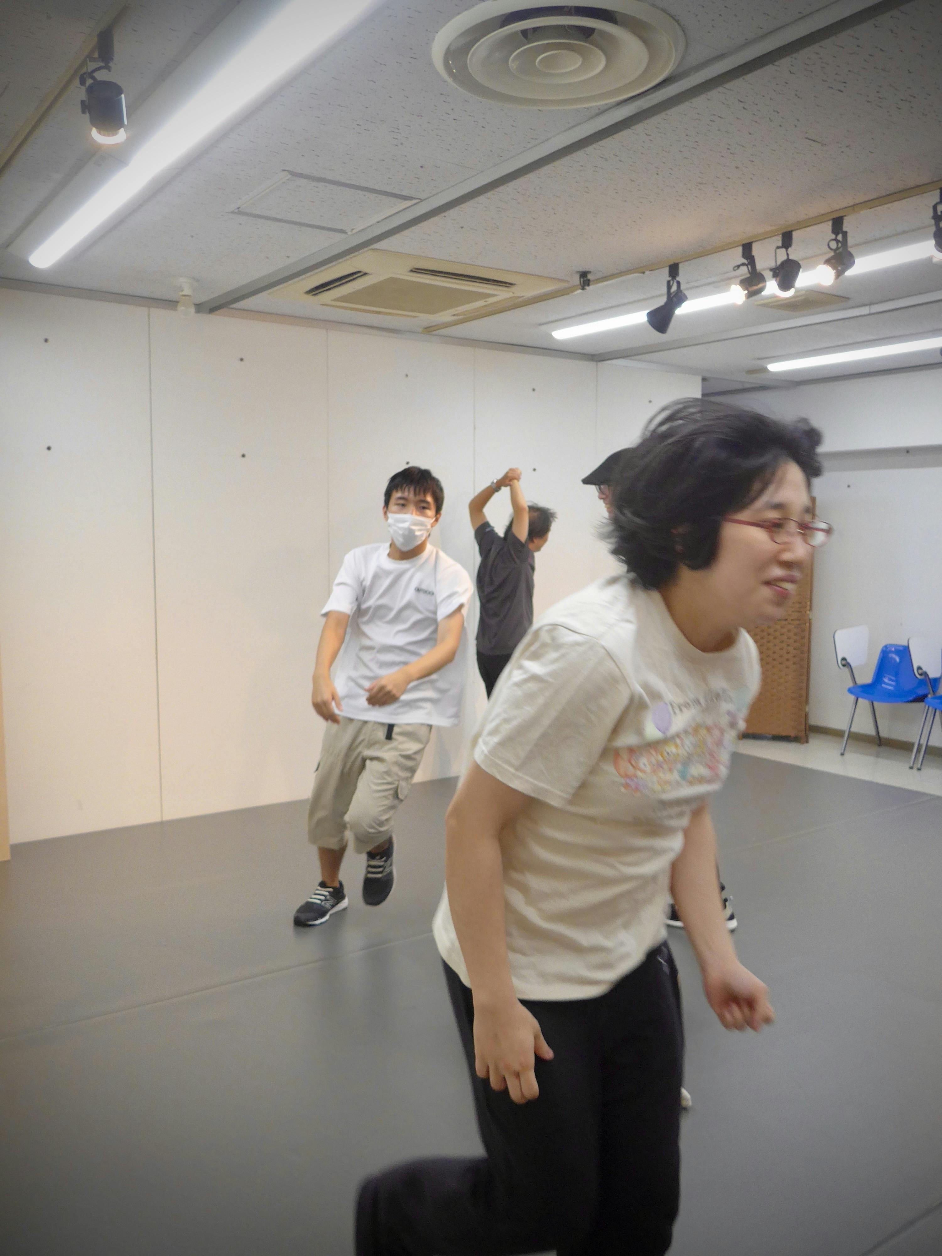 大きな表現とは何か、表現のもとになるイマジネーションを育てる、と言うことを中心に進めました。ただ大きく動くのではなくて、何を大きく表現したいのか?嵐や台風など、最近の自然現象はイメージが湧きやすかったようでした。 スタッフ1名でしたが、メッセンジャーたちが声をかけ合いながら、着替えやアンケートもスムーズに進めていました。 山形公演へ向けて、みんなの気持ちも盛り上がっていました。