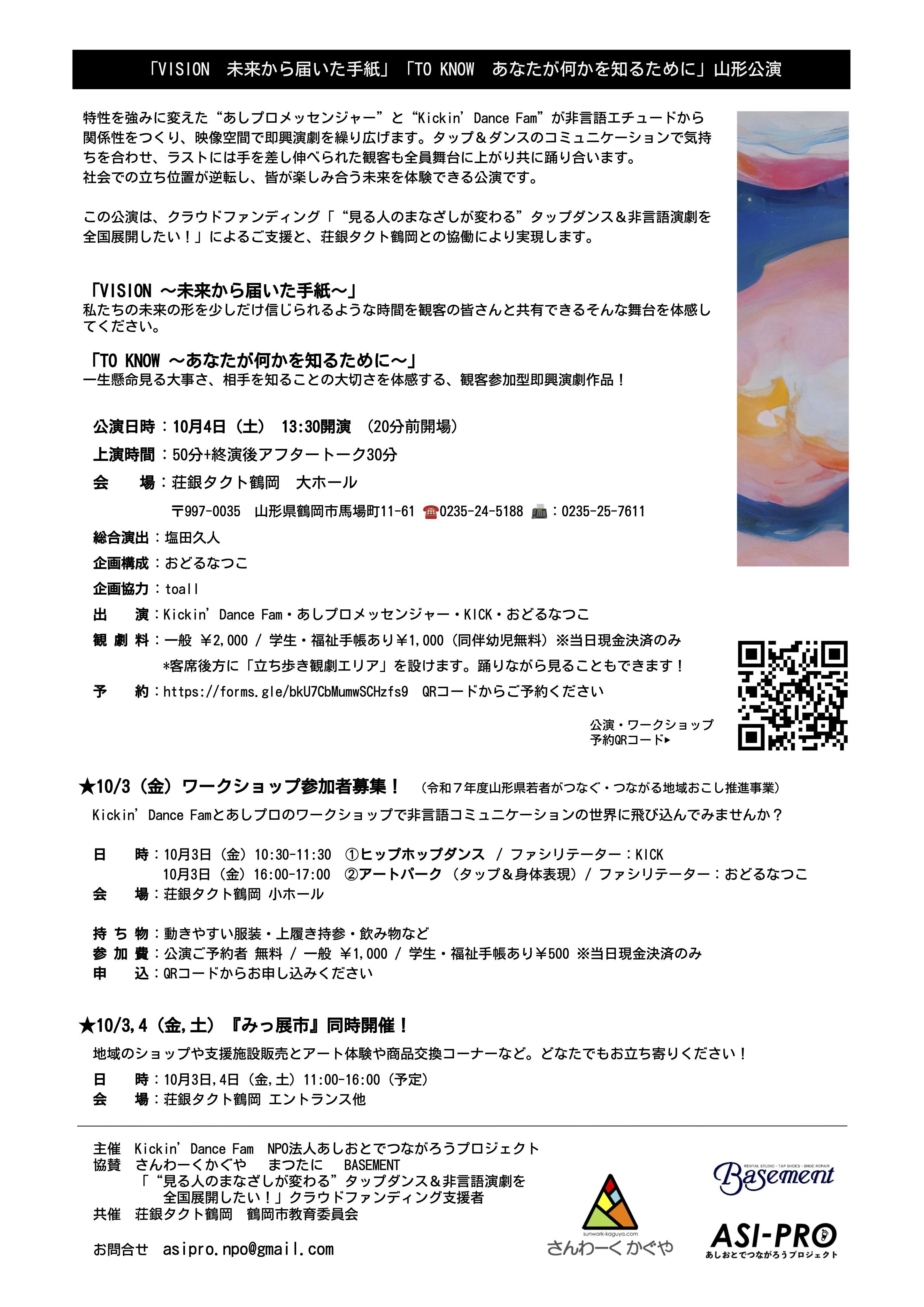 NPO法人あしおとでつながろうプロジェクト(神奈川県鎌倉市、以下、あしプロ)とKickinʼ Dance Fam(山形県鶴岡市)は、知的・発達障害のある表現者による舞台を上演します。