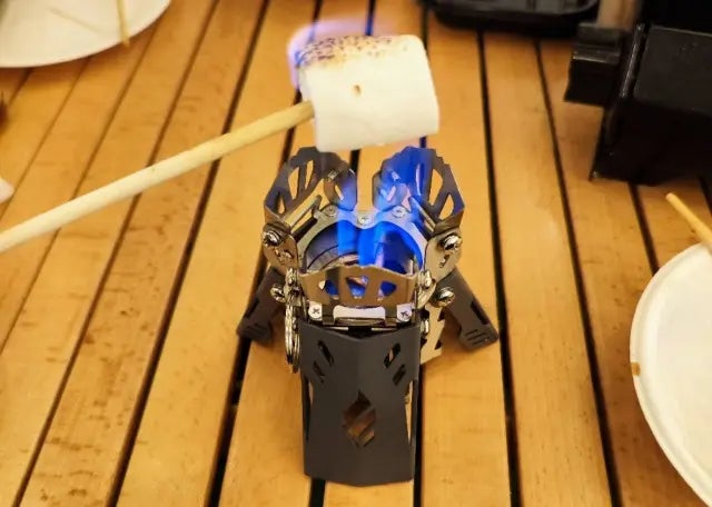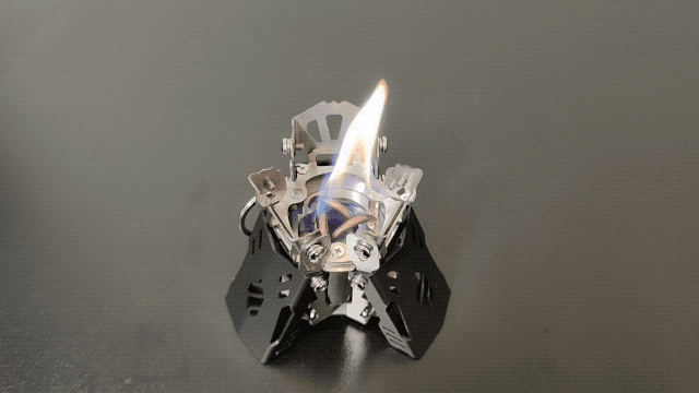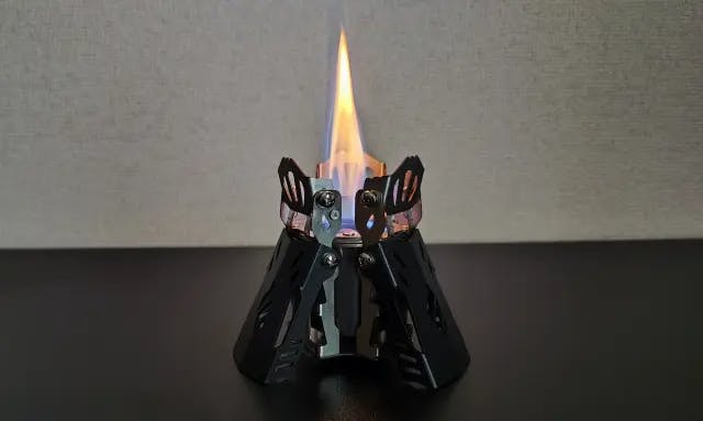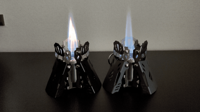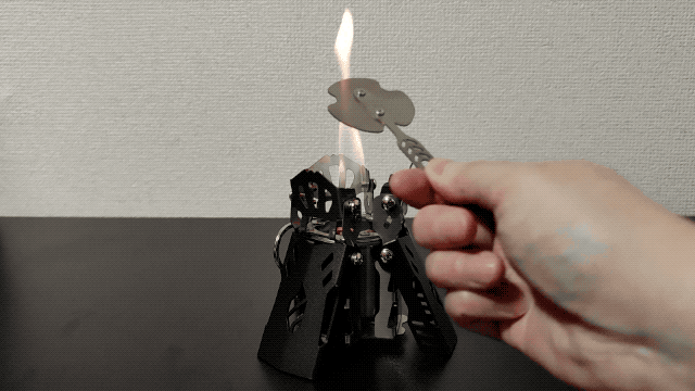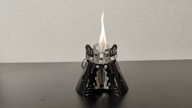 アルコールストーブ「Fire Beast4」は、三本に分かれた炎がゆらゆらと揺れる、小さな焚き火のような美しい炎を楽しむことができます。