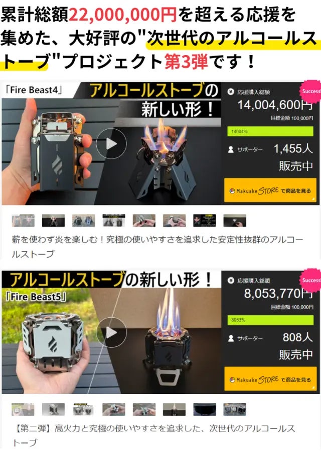 もっと見るアルコールストーブ「Fire Beast7」発送完了