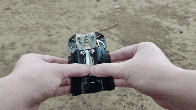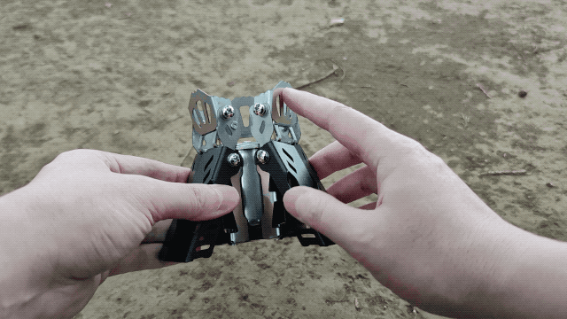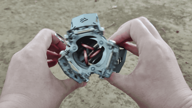 展開脚の部分は燃焼タンクと離れた構造になっているため、燃焼中に手で展開した脚を触って移動してもそこまで熱くは感じません。