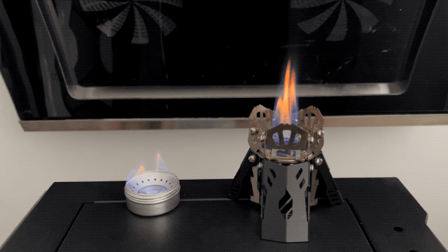 燃焼時の火力は、従来のアルコールストーブと比較して、高出力な火力を生み出します。