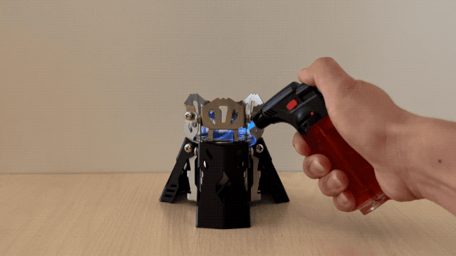 A:毛細管現象を利用し、アルコールを内部の銅管から持ち上げ、熱してから気化まで早いため、一般的なアルコールストーブよりも早く着火することができます。しかし、本体が冷えている時や外気温が低い時は、プレヒートが2回〜3回必要な時もあります。
