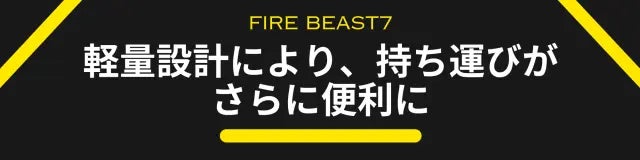 「Fire Beast7」の外部カバーにアルミ合金を採用し、耐久性を保ちながらも軽量化を追求。携帯しやすく、アウトドアでの使用にも最適です。