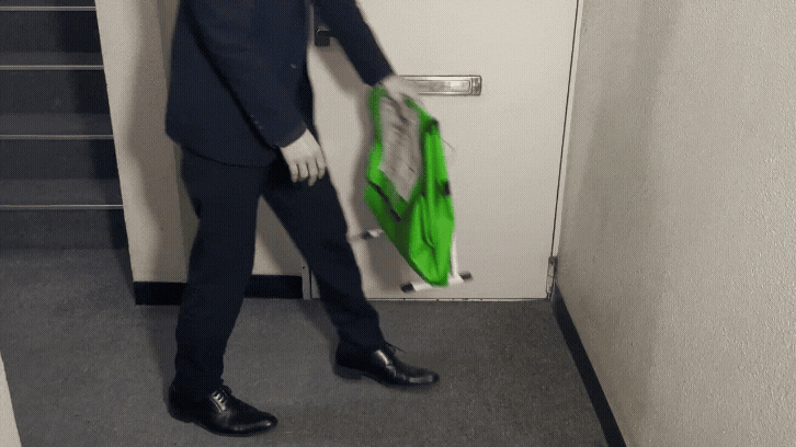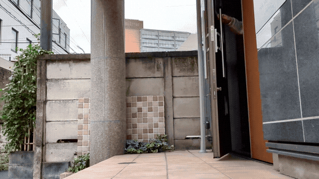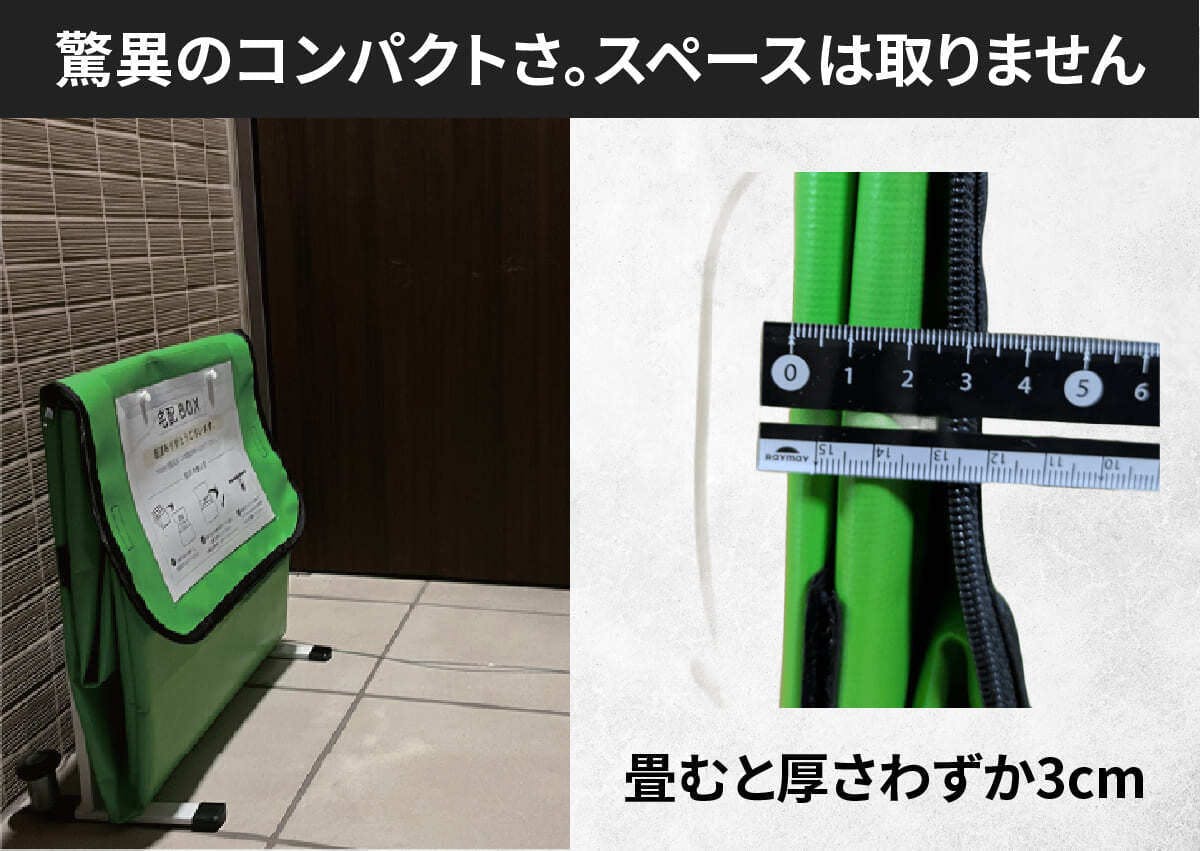 畳んだまま扉の前に置くだけで設置が完了し、非常にコンパクトで玄関前のスペースを取りません。