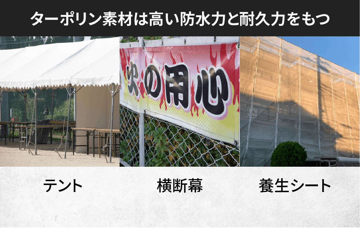 ホームセグリーには「ターポリン」という素材が使われおり、これは建設現場の養生シートやテントなど、野外で使われることが多いです。