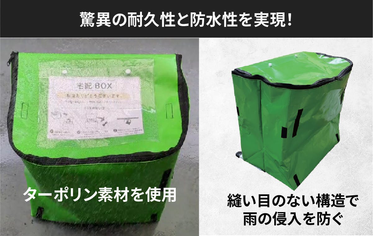 置き配は雨天時に荷物が濡れたり壊れたりしないか不安になりますが、ホームセグリーは防水性と耐久性に優れており、悪天候時でも荷物を守ることができます。