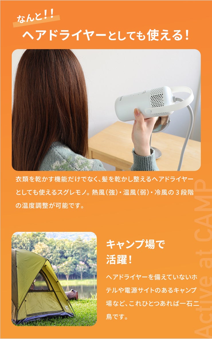 モード:ドライヤーモード(強・弱・冷風)、衣類乾燥モード(強・弱)